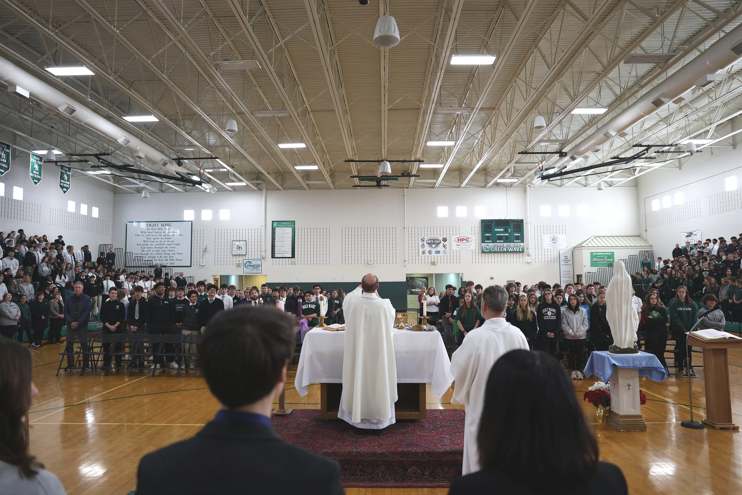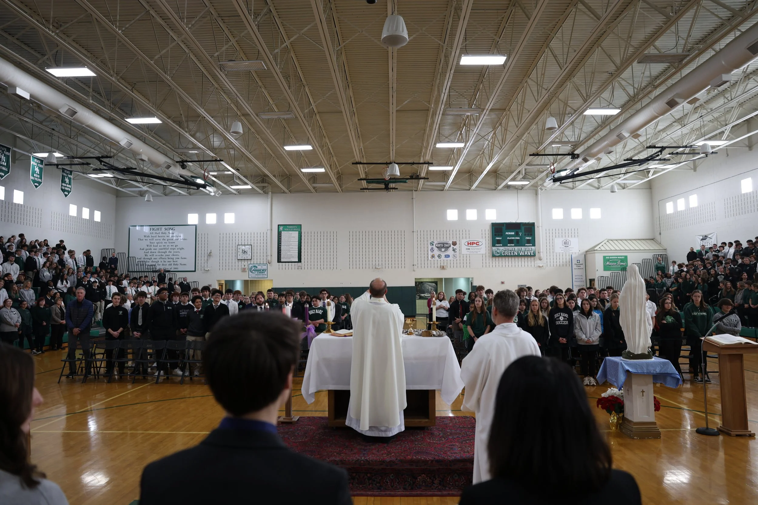 Holy Name celebrates an All-School Mass at least once each month and on every Holy Day of Obligation that falls during the school year. These liturgies bring our entire community together in prayer and are central to our shared life as a Catholic school.